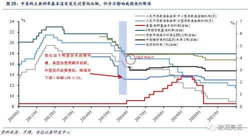 我们得出结论:(1)两国货币政策更多是为各自的经济周期服务,但主要的政策利率基本不会出现相反的情况;在美国连续高频率加息的时间段内,我国的主要利率大概率不会逆方向为之。(2)美国的加息周期,并不影响我国结构性降准,以保持银行间流动性的合理充裕。