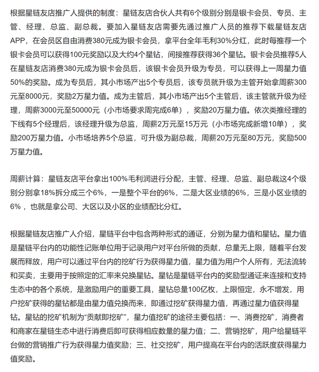 此外,怡亚通证券部人士也曾坦承,曾有媒体质疑星链友店涉嫌传销,但她表示,平台的现金提成只有两级,超过两级的是奖励星券,平台一直合法经营,从未受到监管部门的处罚。