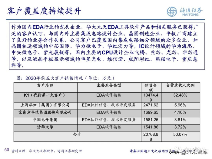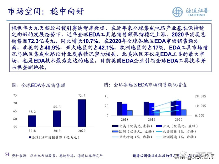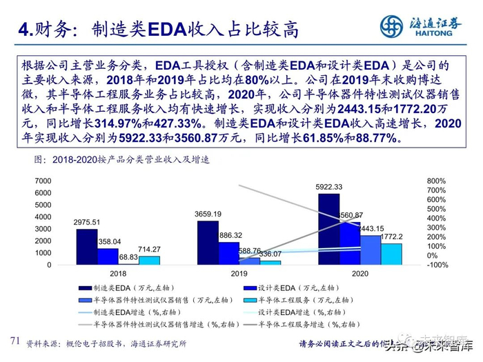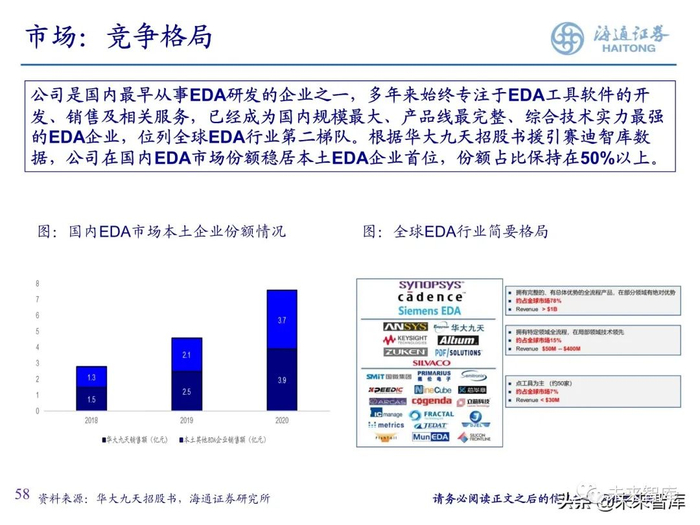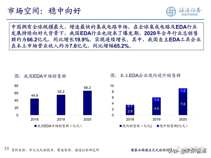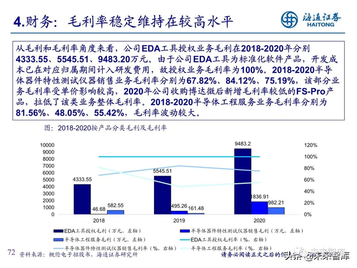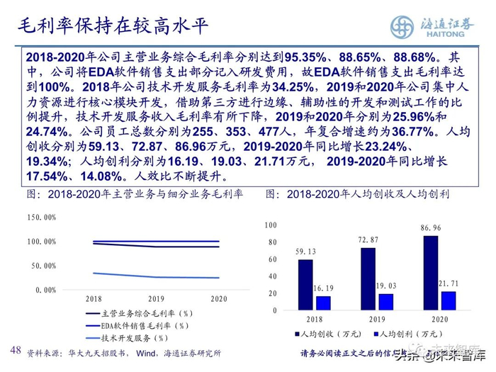 近三年收入占比均在 80%以上。2020年,公司EDA软件销售收入为3.45亿元,同比增长60.47%。技术 开发服务在近三年中保持着较快的增速,2020年公司技术开发实现收入0.61亿 元,同比增长56.41%。(报告来源:未来智库)