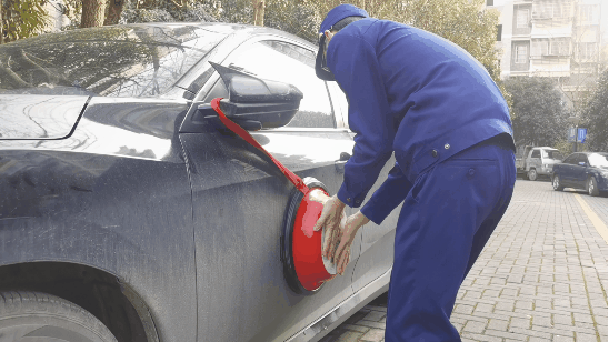 记者现场看到,“红脸盆”通过消防工作人员的手机平台进行线上操作,“上锁”后它会自动排出内部空气形成真空状态。内部的真空吸盘吸力可达300千克以上,牢固地吸附在违停车辆驾驶位的车门上,但不会对车辆造成损坏。