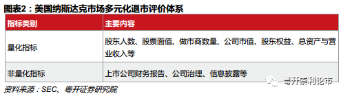 美国各大证券交易所均建立了严格且完善的多元化退市制度,实现了上市公司退市常态化。以美国纳斯达克市场为例,一方面,退市标准多元化,可分为量化指标与非量化指标;另一方面,退市流程精简,未设置暂停上市和恢复上市环节,对应当退市的上市公司直接退市,增强了退市制度的威慑力。