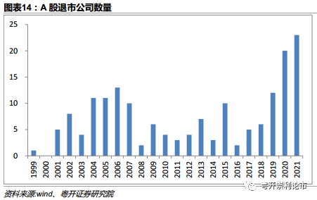 退市新规实施以来,A股退市公司数量显著增长,2021年共有23家公司退市,创历年新高,另外还有74家公司被交易所实施退市风险预警。