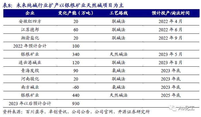 2.2、未来纯碱行业新增产能将以银根矿业天然碱产能扩张为主