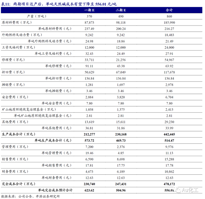 (4)规模效应明显。两期完全达产后,正常生产年份天然碱产量将达到860万吨,单位折旧费用、摊销费用有望显著降低。