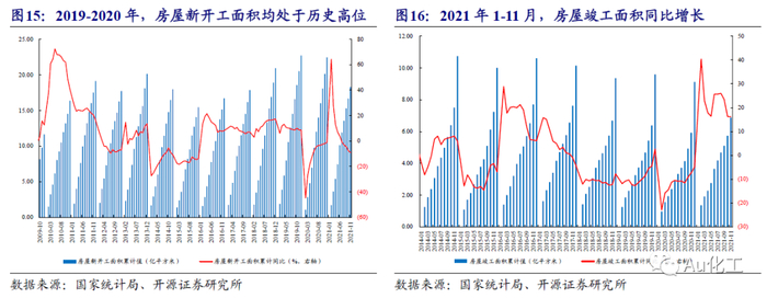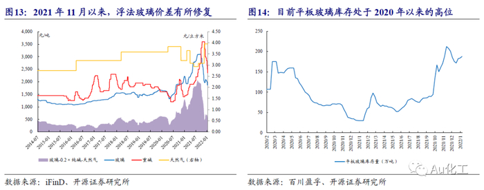 房地产相关的融资环境正在转暖,有望支撑2022年房屋竣工面积保持高位。2021年12月9日,中国人民银行发布2021年11月金融统计数据报告,2021年11月人民币贷款增加1.27万亿元,同比少增1,605亿元。分部门看,住户贷款增加7,337亿元,其中,短期贷款增加1,517亿元,中长期贷款增加5,821亿元。11月末,中国个人住房贷款余额38.1万亿元,较10月末增加4,000亿元。11月19日,央行发布2021年第三季度货币政策报告,对于下一阶段主要政策思路,报告提出央行将配合相关部门和地方政府共同维护房地产市场的“平稳健康发展”。伴随宏观政策向稳增长方向调整,房地产融资环境回暖,房地产竣工有所改善,浮法玻璃景气小幅回升。根据国家统计局数据,2020年,房屋累计新开工面积达9.12亿平方米,同比下降4.90%;2021年1-11月,房屋累计新开工面积达18.28亿平方米,同比下降9.10%,尽管2020、2021年1-11月房屋新开工面积均同比下滑,但仍位于历史高位。考虑到房屋从新开工到竣工的周期一般为1.5-2.0年,在较高的新竣工基数及稳增长的政策预期下,我们预计2022年房地产竣工有望维持高位,有望支持浮法玻璃景气上行。根据百川盈孚数据,截至2022年1月7日,平板玻璃库存量为187.88万吨,已处于2020年以来的高位。2022年,随着房地产竣工持续修复,我们预计浮法玻璃景气有望持续上行。