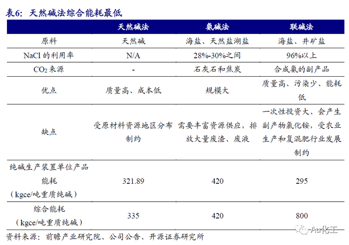 2.2.1、天然碱法制纯碱综合能耗较低,成本优势明显