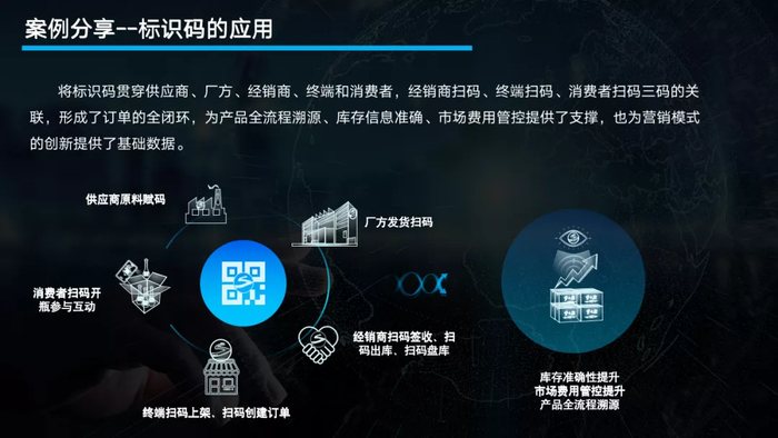 标识码应用是洋河的数字化重点,我们内部称之为“码中台”。白酒行业的市场费用、投入费用和库存一直是难点,这也是洋河这么多年一直在解决的问题,今年我们终于在青云平台上部署了码中台。
