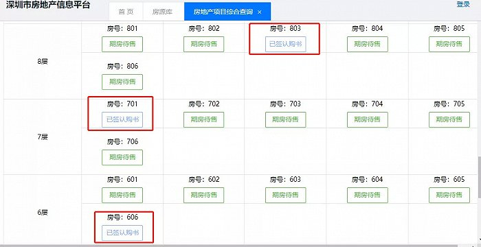 但界面楼市今天查阅深圳市房地产信息平台网站后得知,只有1栋的6套房源显示已签认购书,2栋、3栋和5栋所有房源显示的均是期房待售。