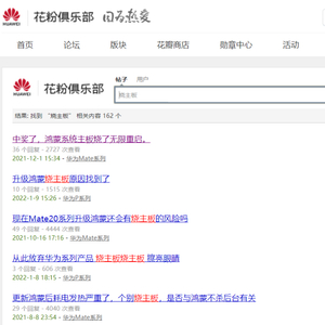 据华为官方论坛花粉俱乐部显示,升级系统后手机主板被烧的相关帖子就有162个,涉及手机型号包括mate20Pro、mate30、P30等旗舰机型。
