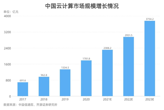 图片来源:Gartner报告截图中国云安全市场空间广阔。根据中国信通院数据,2019年我国云计算整体市场规模达1334.5亿元,增速38.6%。预计2020年~2022年仍将处于快速增长阶段,到2023年市场规模将超过3754.2亿元。中性假设下,安全投入占云计算市场规模的3%~5%,那么2023年中国云安全市场规模有望达到112.6亿元~187.7亿元。