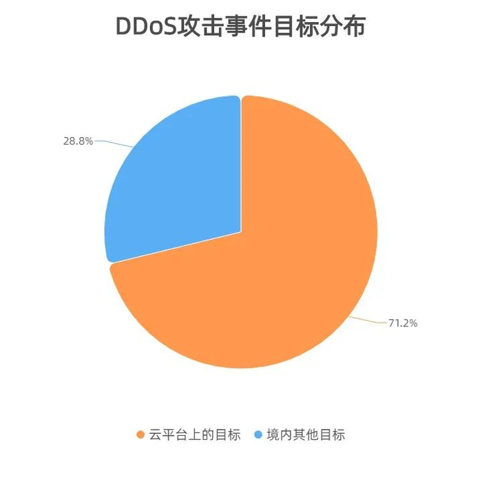发生在我国云平台上的各类网络安全事件数量占比仍然较高,其中云平台上遭受大流量DDoS攻击的事件数量占境内目标遭受大流量DDoS攻击事件数的71.2%、被植入后门网站数量占境内全部被植入后门网站数量的87.1%、被篡改网站数量占境内全部被篡改网站数量的89.1%。