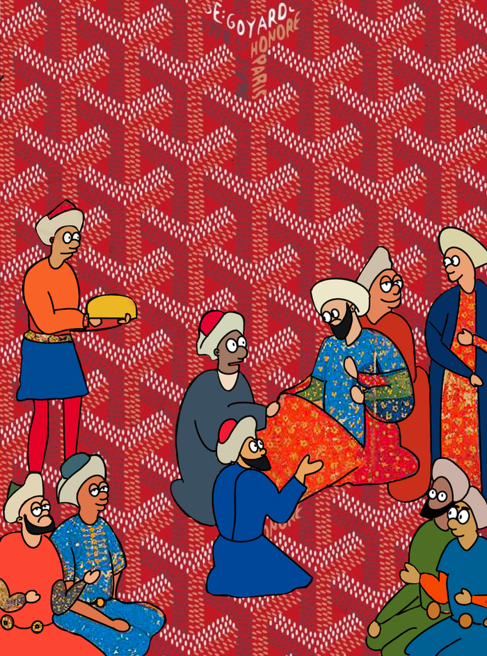 第三周出了一点小状况,在进度上落后了一些,但是没有放弃我的“实验”。继续探索属于“自己的绘画形式语言”,第二就是区分装饰语言与绘画语言之间有什么关系。也很感谢王犁老师在这个时间点把埃舍尔摆到了我们面前,在分析对比之后认为之前觉得重复图样是装饰语言而非绘画形式语言的想法还是狭隘了,在这个阶段我认为同样是绘画形式语言,结构上的复杂使得画面更具有“建筑性”,而图样上的复杂让画面更有“装饰性”。一般规律上,结构的改动需要更多的逻辑思维能力、甚至是数学计算能力,在绘画中,我认为不是构图就是结构,而是对于这种画作来说最需要计算分析的部分是结构。我认为第三周的学习任务是最难的,我所提炼出的想法也是最具有建设性的。最后我呈现的画面是更改了一张波斯得细密画,将其背景更换成了来自戈雅的经典图案,每个元素都是结构上的错视,整个画面又是很整体的元素。这是现代pattern相对以波斯细密画为代表的古代pattern的进步之处——建筑性与装饰性是相伴相生的。