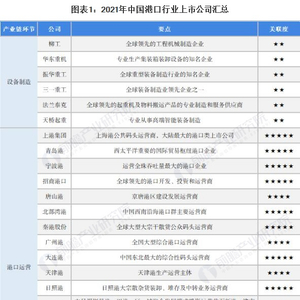 行业主要上市公司:上港集团(600018)、天津港(600717)、宁波港(600576)、日照港(600017)、辽港股份(601880)等