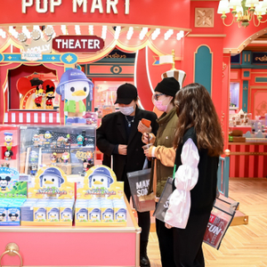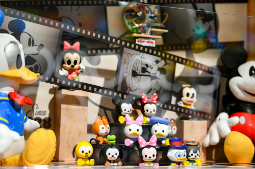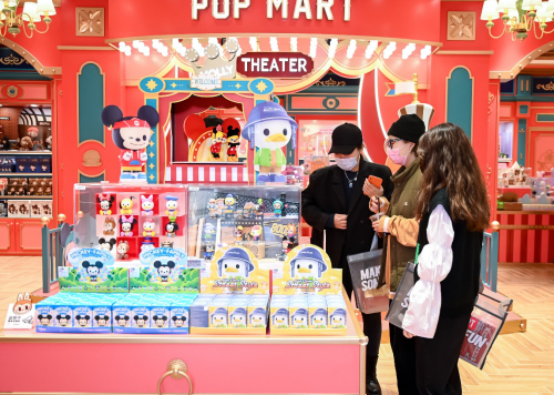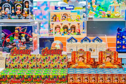 米奇、迪士尼公主、漫威复仇者联盟……在泡泡玛特迪士尼小镇门店,各式各样的版权IP手办吸引了顾客的注意。目前,泡泡玛特已经与迪士尼、华纳、环球、三丽鸥、NBA等数十家版权方建立了合作关系,共签约近80个IP。