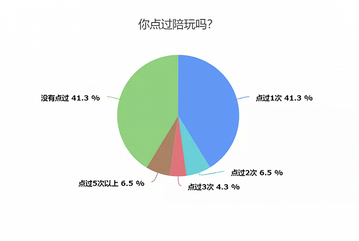 数据显示,“没有体验过陪玩”和“只点过1次”的电竞用户占比为41.3%,而多次体验陪玩服务的用户不足18%。