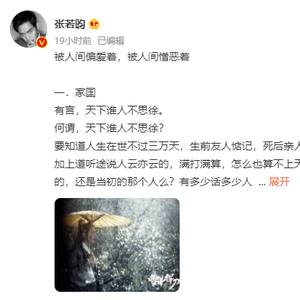 随着作品收官,演员张若昀感慨万千,坐在家中的他,忍不住提笔回忆徐凤年的这一路。他写道:“雪中之约,始于17年,定于20年,面世之日仿佛不久之前,暂别在今。世子在成长,演员张若昀亦在成长,这成长的背后,是多少良师益友的传承与切磋。烽火(原著作者烽火戏诸侯),倦儿哥(编剧王倦),晓飞导演,军儿哥(演员胡军),‘北椋军’,‘徐家儿女’,‘雪中东游小分队’,‘刺徐之徒’,明知第一季戏份寥寥依然一句话就赶来江湖救急的彦霖兄弟,新丽传媒与腾讯视频的诸位,还有太多太多。”