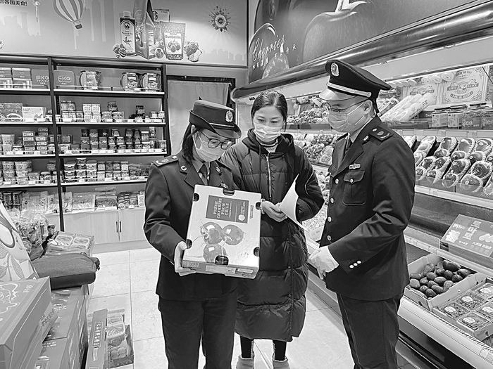 萧山区有两大进口水果集散地(萧山农产品批发市场和萧山东部水果批发市场)。该局派驻专人实施驻场监管,对拒不按照规定履行疫情防控责任的经营者和市场主办方,严格按照有关法律法规予以处罚。同时,严查进口水果“三证”信息,要求各经营单位落实物防政策,一律使用“浙食链”扫码入库、扫码出库,排查库存进口水果,做到存量清查上链。检查过程中,执法人员倡导消费者购买进口水果前,扫码确认线上信息与实际包装信息是否一致,对无码产品或信息有误产品拒绝购买。
