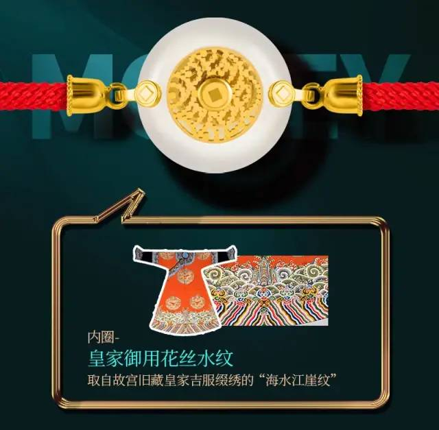 除了黄金打造的貔貅,内圈背面还运用了海水江崖纹!