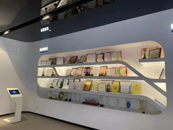 随后,记者来到上实龙创智能创新体验中心,这里更像是一个展示中心,左面的墙挂着公司的发展历程,右边的墙摆满了企业荣誉证书和奖杯。从企业发展历程来看,上实龙创经历了几次业务转型和更名。