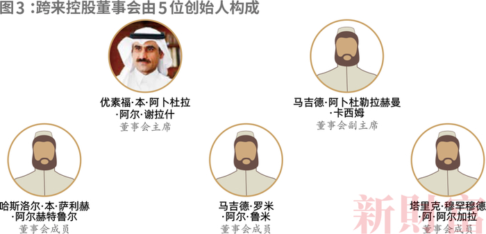 跨来控股的董事会成员为5位创始人,分别在多个子公司任职(图3)。谢拉什担任董事会主席,马吉德·卡西姆担任副主席,其他3位家族创始人担任董事。谢拉什曾在沙特中央银行SAMA工作,他创立了多个知名企业,包括达兰卡地产、巴林善道银行、沙特善道资本、沙特家庭贷款公司等。马吉德·卡西姆担任巴林善道银行、沙特善道资本副主席,在房地产开发、投资和公司治理方面拥有丰富经验。哈斯洛尔担任王国分期付公司总经理,以及达兰卡地产、巴林善道银行、沙特家庭贷款公司、沙特善道资本的董事,在融资领域拥有长期的积淀。马吉德·阿鲁米是跨来金融的创始合伙人、达兰卡地产董事,在金融创新领域富有经验。塔里克·杰瑞拉为达兰卡地产和沙特家庭贷款公司董事,长于土地规划和房地产评估。