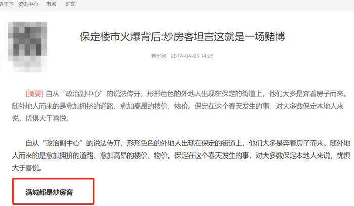 因此,保定的房价主要是炒房客通过噱头炒起来的,这也不是乱说,新华网曾经报道形容,保定满城都是炒房客。