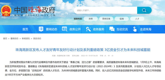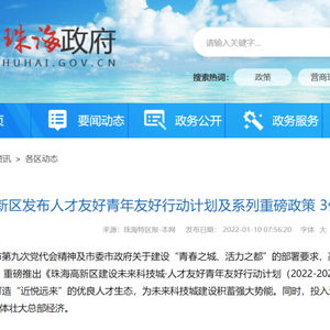 1月9月,珠海推出《珠海高新区建设未来科技城·人才友好青年友好行动计划(2022-2024年)》,推出最高600万元住房补贴、80万元生活补贴、3.8万元租房补贴等“住房奖补”,6折租住人才安居住房,人才公寓申请入住“零等待”。