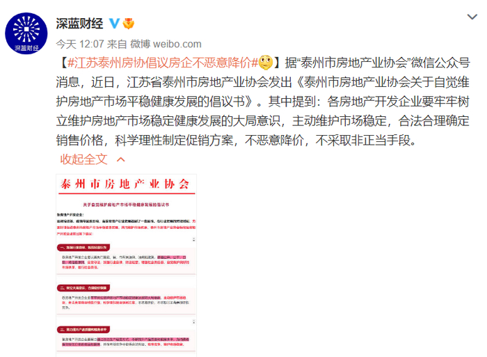 与此同时,还有地方房协倡议当地各房企不要恶意降价。