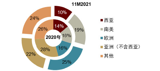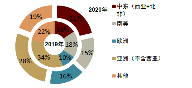 图表3:2019年、2020年中国整车出口布局更为均衡