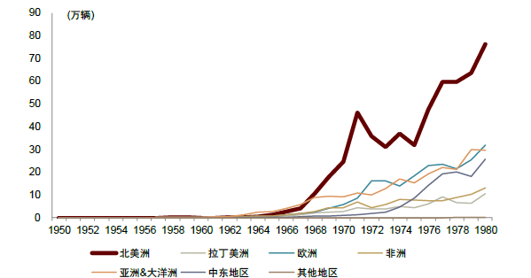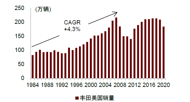 1) 70年代,在石油危机大背景下,丰田凭借低油耗的高性价比产品快速切入北美市场,打造热销车型,海外市场销量迅速取得突破;