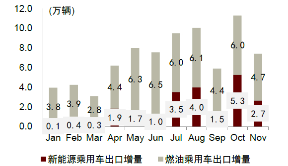 图表8:新能源乘用车月度出口量显著优于往年同期