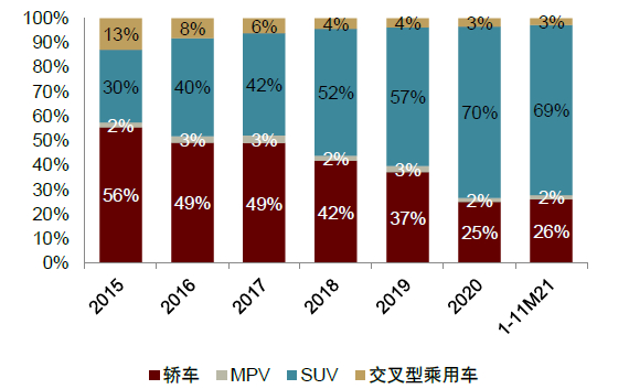 图表5:SUV为中国乘用车出口主力车型