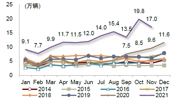 图表6:4Q20起乘用车月度出口量进入高增通道