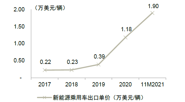 图表9:2021年新能源乘用车出口单价明显提升