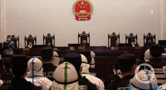 ▲1月10日,“财神国际”跨国诈骗集团案在宁夏固原市西吉县人民法院一审公开开庭。图片来源/庭审直播截图