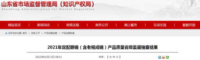 中国质量新闻网讯 2022年1月13日,山东省市场监督管理局网站发布2021年定配眼镜(含老视成镜)产品质量省级监督抽查结果。本次为2021年第2批省级监督抽查,共抽查流通领域定配眼镜产品110批次,单光老视成镜产品35批次。