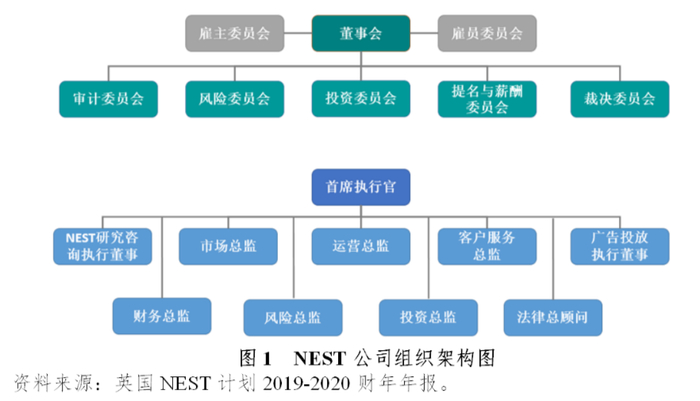 董事会是NEST公司的最高决策机构,由1名主席和其他10名委员组成,对公司本身的经营管理和计划的投资管理做出重要决策。董事会下设审计委员会、风险委员会、投资委员会、提名与薪酬委员会和裁决委员会。同时,根据《养老金法案(2008)》要求,在董事会层面成立雇主委员会和雇员委员会,旨在充分了解参加计划的雇主及雇员的需求。其中,投资管理委员会负责NEST计划的投资决策,包括制定投资策略、调整投资方法和投资产品、监督评价投资业绩和投资风险等;风险委员会负责对公司及计划运作过程中面临的风险进行全面管理,并对所采用的风险管理策略做出相应决策;审计委员会负责财务及内控合规的整体管控,包括审计公司和计划的财务报表、监督内部控制、评估财务审计和内控合规的有效性等。提名与薪酬委员会负责公司的人事与薪酬决策,一方面需要制定公司的薪酬安排战略与组织文化以确保员工人尽其才,另一方面还需监督公司治理过程中人事管理以及考核评价方面的适合性与有效性。裁决委员会则负责处理评判NEST计划运作过程中发生的纠纷与争议。