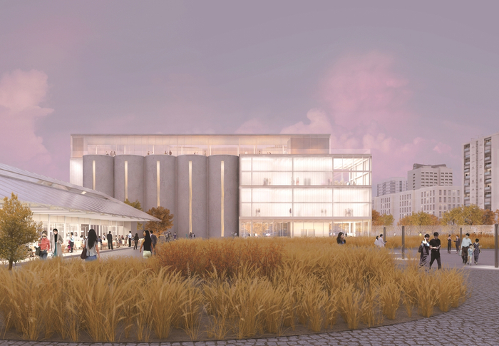 此外,渔里未来社区对原有历史感的建筑进行保留和维护,对旧城进行改造提升。沿着水系,打造水街商业中心,包括特色餐饮、生活配套、美学体验等各个方面;而原有的筒仓与周边海盐塘景观带将被赋予新的形式和功能,成为承载家庭艺术、乐活广场、城市记忆博物馆等三大功能的筒仓艺术中心。