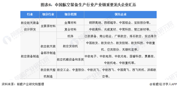 原标题:【干货】航空装备制造行业产业链全景梳理及区域热力地图 来源:前瞻产业研究院