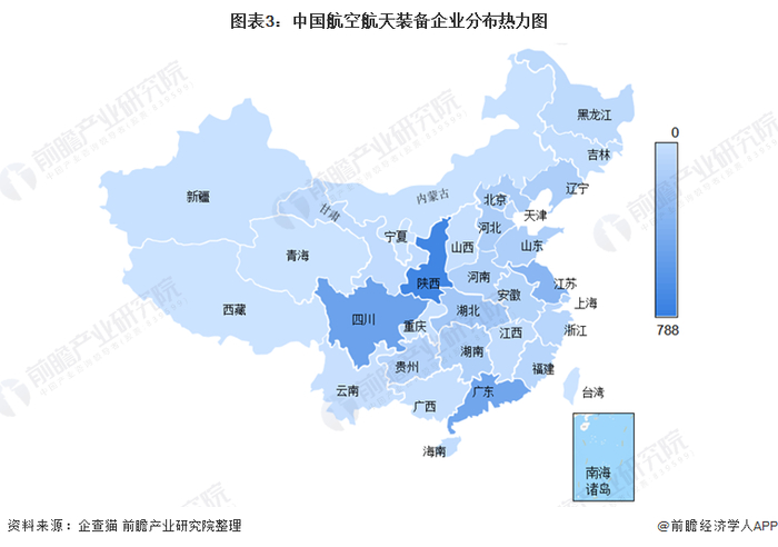 航空装备制造行业区域热力地图:陕西省企业分布最多