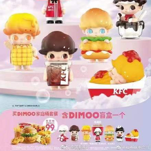 肯德基官方微博于2022年1月4日发布消息称,肯德基中国35周年KFC X DIMOO 限定款系列手办梦幻现身。即日起,到肯德基购买指定套餐,就能获得 @POPMART泡泡玛特 联名DIMOO限定款手办一个,款式随机,数量有限,先到先得。