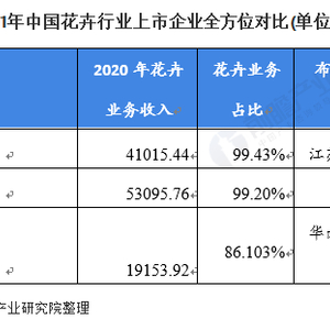 随着花卉电商的出现,我国花卉行业进入了新一轮的增长期,但受制于花卉行业的行业壁垒较弱的特点,我国花卉行业的竞争程度较为激烈,市场集中度较低。目前,中国花卉行业的上市企业中,虹越花卉的营业收入最高,2020年全年共计营收5.31亿元。