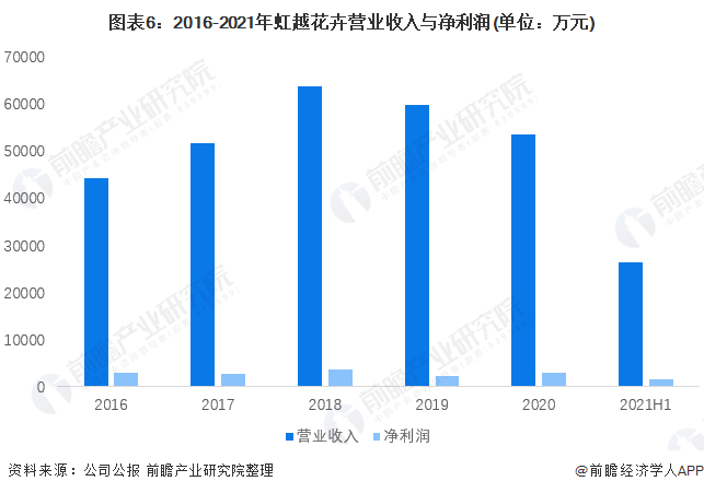 从虹越花卉的花卉业务经营情况来看,营业收入与净利润的峰值均出现在2018年,2020年时,受到新冠肺炎疫情的影响,花卉业务营业收入有所减少,但由于企业花卉电商业务的加持,花卉业务净利润仍旧保持增长。