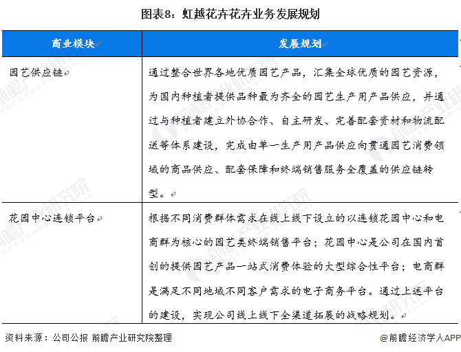 虹越花卉是一家专注于园艺产业,以推广发展家庭园艺消费为目标,为国内专业种植者提供最为齐全的世界优质园艺资源供应和国内家庭园艺爱好者提供一站式体验消费服务型企业。在“十四五”期间,虹越花卉将继续加强以园艺产品研发供应为核心的园艺供应链板块和线上线下融合的花园中心连锁平台两大业务。