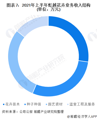从花卉业务的收入结构来看,花卉业务中花卉苗木、种子种苗与园艺资材的营收占比均在30%左右。