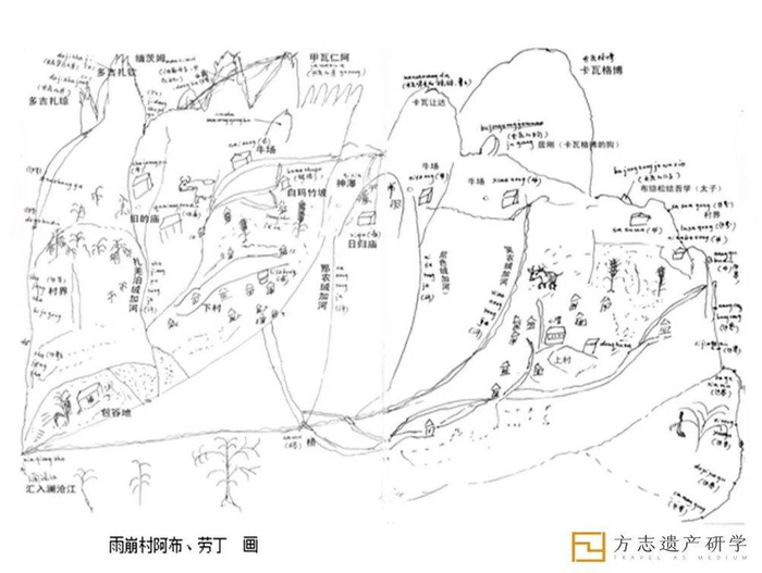 2000年在德钦县雨崩村调查自然圣境,请村民画的神山和村庄地图