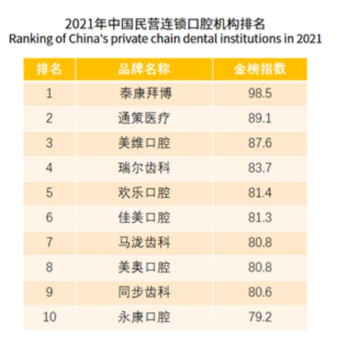 2019年我国公立专科口腔医院数量为162家,由于受到体制约束,缺乏足够的市场竞争和激励机制,未来公立专科口腔医院的数量不会发生较大变化。与此同时,民营专科口腔医院的迅猛增长与之形成鲜明对比。艾媒金榜(iiMedia Ranking)发布的《2021年中国连锁民营口腔机构品牌排行榜TOP20》上,不少民营口腔机构凭借综合实力跻身榜单前十。