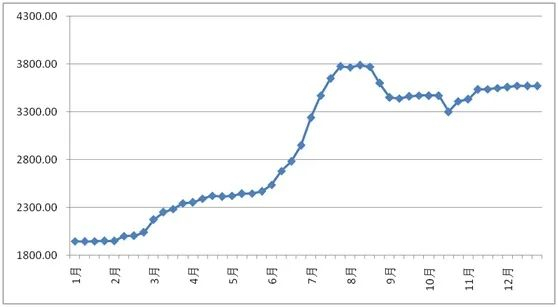 2021年,在国际市场带动下,国内钾肥价格涨幅明显,在所有肥种中涨幅最大。据化工在线统计,2021年初,国内钾肥价格在2000元(吨价,下同)左右,到年底已涨至3810元左右,涨幅达90.5%,位居涨幅榜第三位。