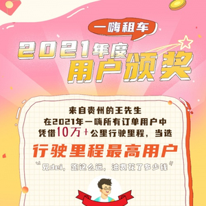 一嗨租车官方数据显示,截止2021年12月31日,一嗨租车国内业务覆盖数量已达506座城市,网点数量增加至9000+个,线下服务网点增长高达100%;车型方面,2021新增15款车型,从舒适型车丰田亚洲狮到高端性能车奥迪RS5,一嗨租车不断丰富车型,满足不同消费层级用户的自由选择;在这一年里,一嗨租车服务最东至黑龙江佳木斯,最南至海南三亚,最西至新疆喀纳斯,最北至内蒙古呼伦贝尔,在幅员辽阔的中国大地上,累计服务用户超五百多万......岁末年初,一嗨租车特别挑选那些令人印象深刻的用户之最,为他们送上新年祝福大礼。