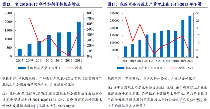 2.1、 混凝土外加剂行业增速可观,看好 2022 年基建发力同步带动外加剂需求向好