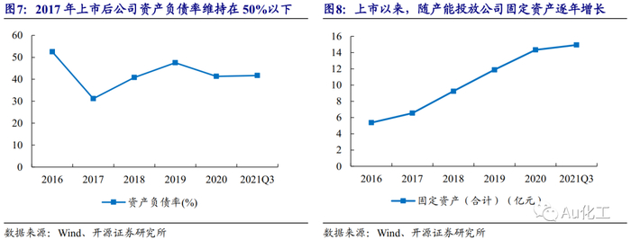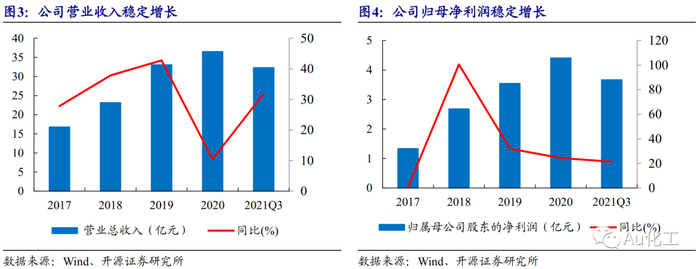 公司资产负债率控制得当,随产能投放固定资产逐年增长。据Wind数据,2017年上市以后,随产能的扩张,公司的资产负债率有所上升,但是始终控制在50%以下。2019年后资产负债率有所下降,截至2021年三季度末,公司资产负债率为41.71%。公司上市至今保持产能扩张,全国多基地逐步投产,公司固定资产保持逐年快速增长,2017-2020年复合增速近30%,截至2021Q3公司的固定资产(合计)为14.94亿。